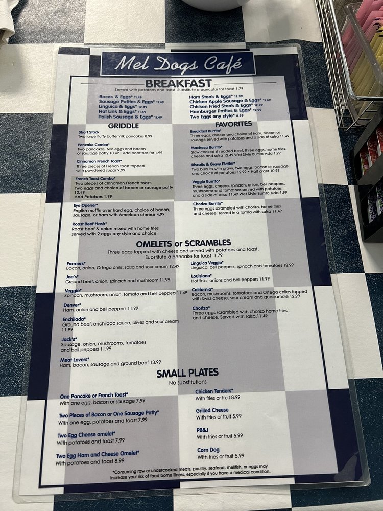 Mel Dog's Cafe, a hidden gem in Elk Grove, CA, offers a cozy and welcoming atmosphere. Run by twin sisters, this family-owned restaurant provides classic American breakfast and brunch options. The menu features mouthwatering omelets like the Farmers Omelet and Joe's Omelet, as well as hearty breakfast plates such as Bacon & Eggs and Chicken Fried Steak & Eggs. Customers rave about the flavorful food, generous portions, and friendly service. The cafe's unique decor, with walls adorned with art and a ceiling made of business cards, adds to the charming ambiance. Whether you're looking for a delicious breakfast or a relaxed brunch spot, Mel Dog's Cafe is a must-visit destination.